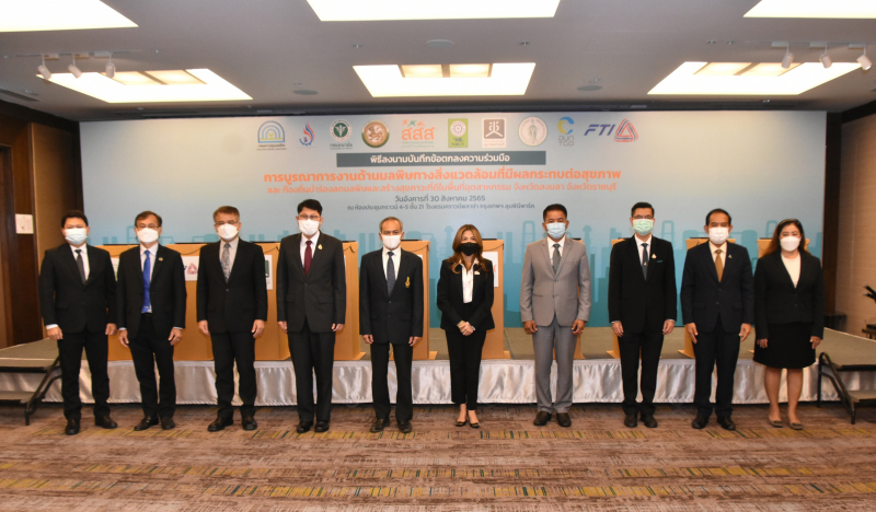 วันที่ 30 สิงหาคม 2565 สำนักงานการวิจัยแห่งชาติ (วช.) กระทรวงการอุดมศึกษา วิทยาศาสตร์ วิจัยและนวัตกรรม ร่วมกับ สำนักงานกองทุนสนับสนุนการสร้างเสริมสุขภาพ (สสส.) โดย นายเอนก บำรุงกิจ รองผู้อำนวยการสำนักงานการวิจัยแห่งชาติ และ นางเบญจมาภรณ์ ลิมปิษเฐียร ผู้ช่วยผู้จัดการกองทุน สสส. ลงนามบันทึกข้อตกลงความร่วมมือ “บูรณาการดำเนินงานด้านมลพิษทางสิ่งแวดล้อมที่ส่งผลกระทบต่อสุขภาวะ” ที่ครอบคลุม 4 ประเด็นสำคัญ มลพิษทางอากาศ มลพิษจากขยะ มลพิษอุตสาหกรรม และการเปลี่ยนแปลงสภาพภูมิอากาศ ซึ่งระหว่าง 10 หน่วยงาน ได้แก่ สำนักงานการวิจัยแห่งชาติ, กรมควบคุมมลพิษ, กรมอนามัย, กรมโรงงานอุตสาหกรรม, กรมส่งเสริมการปกครองส่วนท้องถิ่น, สำนักงานคณะกรรมการสุขภาพแห่งชาติ, สภาอุตสาหกรรมแห่งประเทศ, องค์การบริหารจัดการก๊าซเรือนกระจก (องค์การมหาชน) กรุงเทพมหานคร และ สสส. ณ โรงแรมคราวน์พลาซ่า กรุงเทพฯ