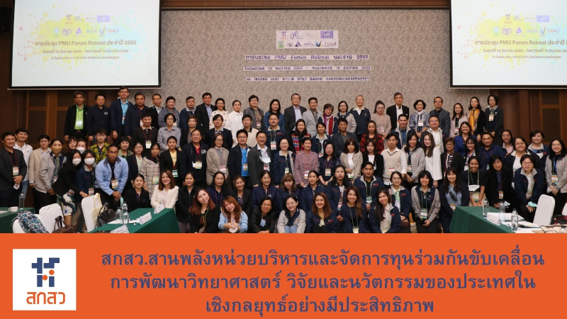 ศ.กิตติคุณ นพ.สุทธิพร จิตต์มิตรภาพ ประธานกรรมการส่งเสริมวิทยาศาสตร์ วิจัยและนวัตกรรม (กสว.) เป็นประธานเปิดการประชุม PMU Forum Retreat ประจำปี 2565 ระหว่างวันที่ 16-18 ธันวาคม 2565 ณ โรงแรม เดอะ คาวาลิ คาซ่า จังหวัดพระนครศรีอยุธยา ซึ่งจัดโดยสำนักงานคณะกรรมการส่งเสริมวิทยาศาสตร์ วิจัยและนวัตกรรม (สกสว.) โดยมีวัตถุประสงค์เพื่อทบทวน แลกเปลี่ยน และรับฟังข้อเสนอแนะหรือความคิดเห็นร่วมกันของหน่วยบริหารและจัดการทุน (PMU) เพื่อให้การขับเคลื่อนการพัฒนาวิทยาศาสตร์ วิจัยและนวัตกรรม (ววน.) ในเชิงกลยุทธ์เป็นไปอย่างมีประสิทธิภาพ