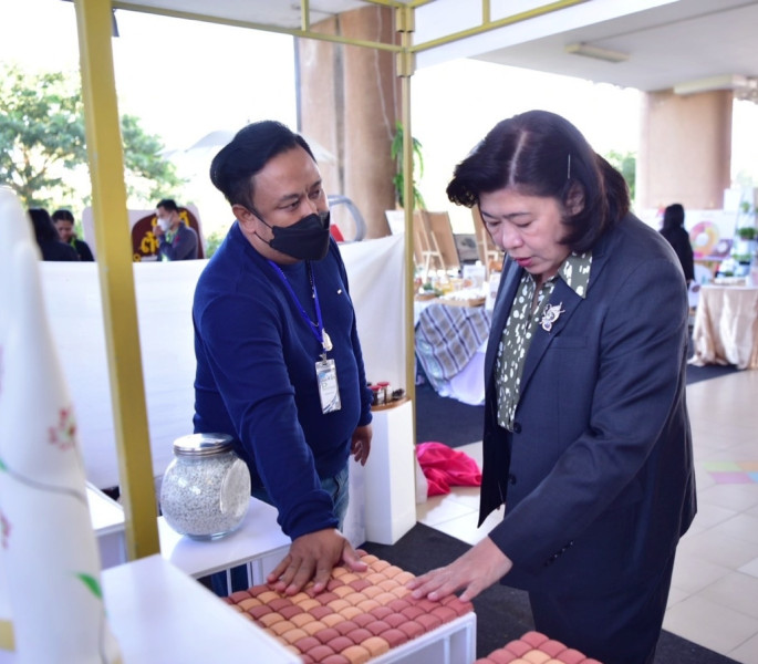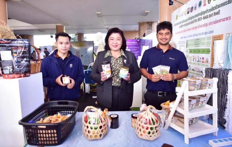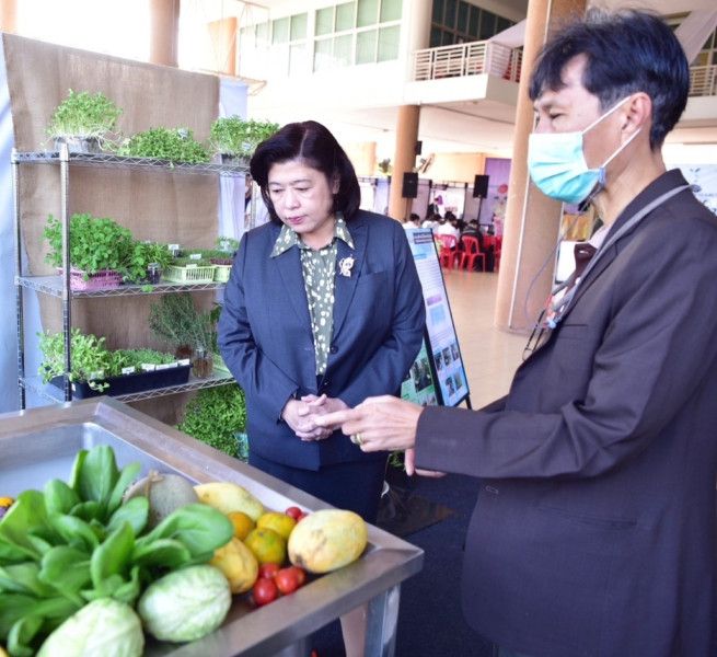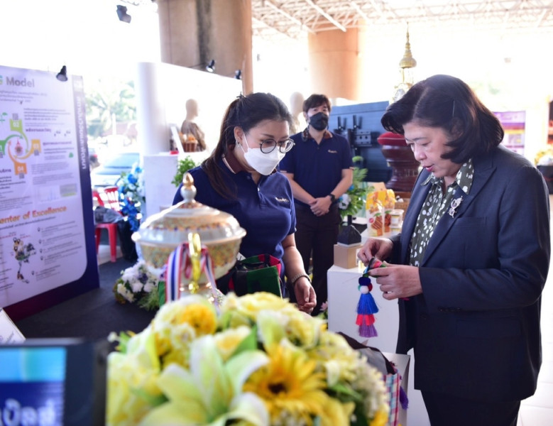 ในวันอาทิตย์ที่ 8 มกราคม 2566 ดร.วิภารัตน์ ดีอ่อง ผู้อำนวยการสำนักงานการวิจัยแห่งชาติ ได้ร่วมเยี่ยมชมผลิตภัณฑ์ที่ได้รับการยกระดับคุณภาพ ศักยภาพและมาตรฐานจากงานวิจัยและนวัตกรรม ที่นำเสนอในภาคนิทรรศการ พร้อมร่วมแลกเปลี่ยนความเห็นกับนักวิจัยในทิศทาง โอกาสและแผนการพัฒนาผลิตภัณฑ์ที่จะสร้างความยั่งยืนให้กับชุมชน วิสาหกิจและผู้ประกอบการ