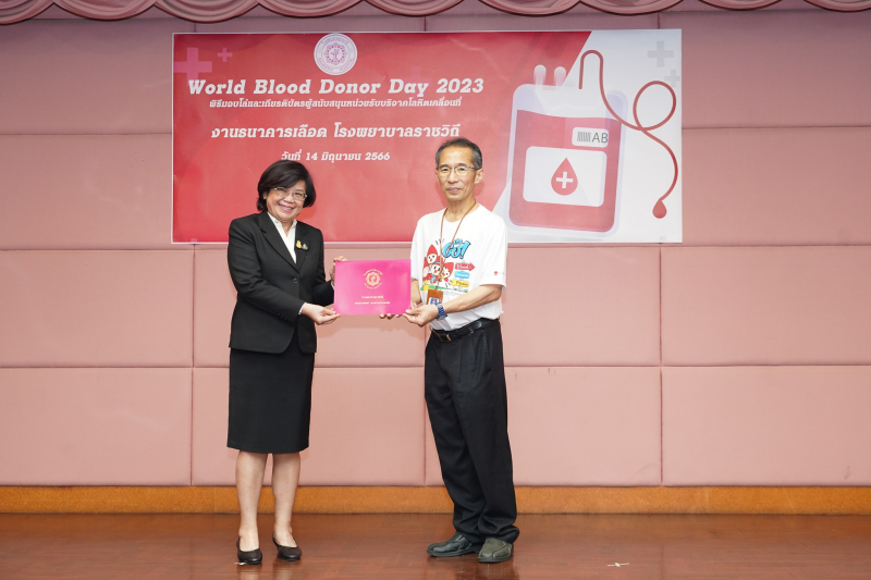 วันที่ 14 มิ.ย. ศ.ดร.นพ.สิริฤกษ์ ทรงศิวิไล ปลัดกระทรวงการอุดมศึกษา วิทยาศาสตร์ วิจัยและนวัตกรรม (อว.) มอบนางนงนภัส หมวดเดช ผู้อำนวยการกองกลาง สำนักงานปลัดกระทรวง อว. เป็นผู้แทนรับมอบเกียรติบัตรในฐานะหน่วยงานผู้สนับสนุนหน่วยรับบริจาคโลหิตเคลื่อนที่ งานธนาคารเลือด เนื่องในวันผู้รับบริจาคโลหิตโลก “World Blood Donor Day 2023” โรงพยาบาลราชวิถี โดยมี นายแพทย์ไพโรจน์ เครือกาญจนา รองผู้อำนวยการด้านการแพทย์ โรงพยาบาลราชวิถี เป็นประธานมอบเกียรติบัตร ณ ห้องประชุมโยธี ชั้น 11 อาคารเฉลิมพระเกียรติฯ โรงพยาบาลราชวิถี