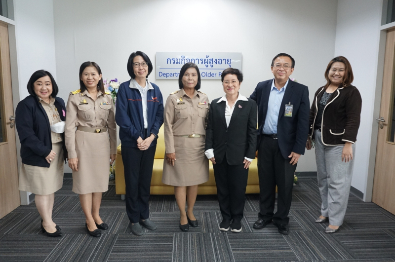 น.ส.แรมรุ้ง วรวัธ อธิบดีกรมกิจการผู้สูงอายุ ระบุว่า ณ วันนี้ ประเทศไทยมีผู้สูงอายุร้อยละ 20 ของประชากรไทย ซึ่ง พม.ได้เตรียมความพร้อมก่อนเข้าสู่สังคมสูงวัย 3 ด้าน ได้แก่ การดูแลผู้สูงอายุ การทำงานกับกลุ่มผู้สูงอายุที่ยังมีพลังในชุมชนต่าง ๆ และการดูแลผู้สูงอายุที่อยู่ในภาวะเปราะบาง โดยมีโจทย์ท้าทายใหม่ ๆ ของรัฐบาล เช่น สวัสดิการถ้วนหน้าของผุ้สูงอายุ การเตรียมความพร้อมรองรับผู้สูงอายุกลุ่มเปราะบางที่อยู่ในชุมชน จึงอาจจะต้องทำงานวิจัยอย่างเร่งด่วนที่จำเป็นสำหรับผู้สูงอายุ เช่น อาหารเสริม หุ่นยนต์ดูแลผู้สูงอายุ การออกแบบห้องพักที่เหมาะสมกับผู้ป่วยจิตเวช ภาวะหลงลืมตามวัยหรืออัลไซเมอร์ นอกจากนี้ยังอยากร่วมหารือกับอธิบดีกรมการปกครองส่วนท้องถิ่น เนื่องจากได้รับเสียงสะท้อนเรื่องการดูแลผู้สูงอายุที่ยังติดข้อกฎหมายหลายประการ ประเด็นเร่งด่วนมาก คือ การมีกลไกหรือรูปแบบการดูแลผู้สูงอายุให้มีอายุยืนยาวอยู่ในบ้านได้มากที่สุด เพราะสถานสงเคราะห์มีพื้นที่รองรับจำกัดต้องใช้ระบบรอคิว จึงต้องบูรณาการงานในท้องถิ่นเพื่อการดูแลผู้สูงอายุแบบจริงจังในลักษณะคลินิกผู้สูงอายุในพื้นที่