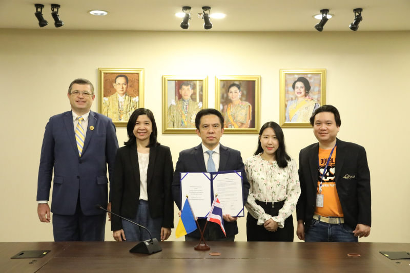 กระทรวง อว. โดย GISTDA และหน่วยงานอวกาศแห่งยูเครน หรือ SSAU ลงนามบันทึกความเข้าใจ (MoU) เพื่อร่วมมือกันในด้านเทคโนโลยีอวกาศ เมื่อวันที่ 1 พฤศจิกายน 2566 โดยมี ดร.ปกรณ์ อาภาพันธุ์ ผู้อำนวยการ GISTDA และนายโวโลดีมีร์ เบน รักษาการหัวหน้า SSAU, นายปาฟโล โอเรล อุปทูต A.I. ของสถานเอกอัครราชทูตยูเครนประจำประเทศไทย เข้าร่วมเป็นสักขีพยาน
