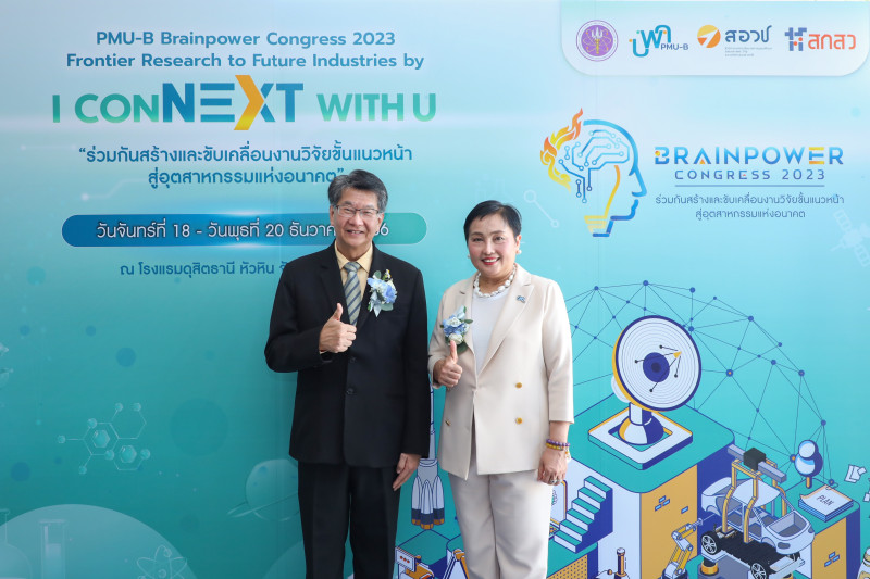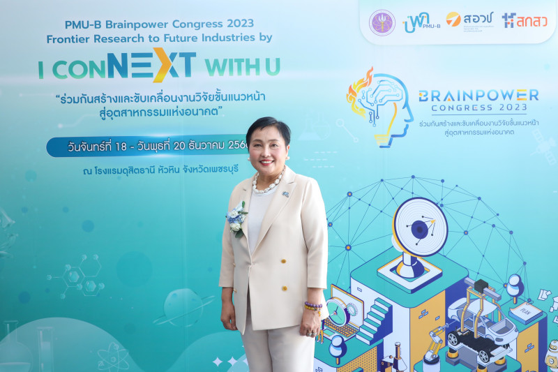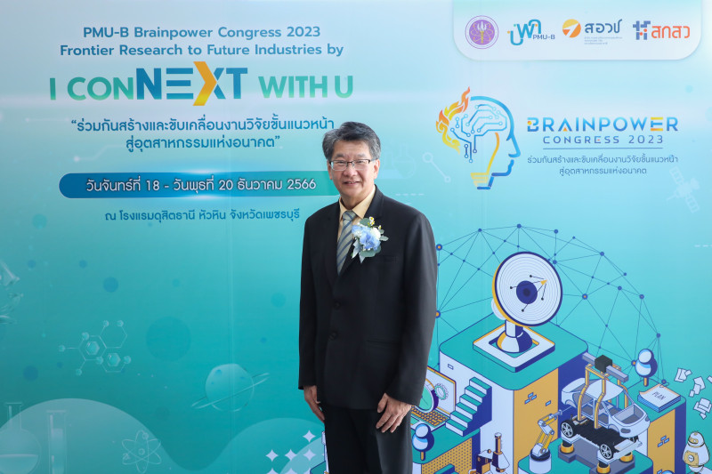 หน่วยบริหารและจัดการทุนด้านการพัฒนากําลังคน และทุนด้านการพัฒนาสถาบันอุดมศึกษา การวิจัย และการสร้างนวัตกรรม (บพค.) สํานักงานสภานโยบายการอุดมศึกษา วิทยาศาสตร์ วิจัย และนวัตกรรมแห่งชาติ (สอวช.) หน่วยงานในกำกับกระทรวงการอุดมศึกษา วิทยาศาสตร์ วิจัยและนวัตกรรม (อว.) จัดงานประชุมวิชาการ “PMU-B Brainpower Congress 2023 : Frontier Research to Future Industries by I conNEXT with U” ภายใต้แนวคิด “ร่วมกันสร้างและขับเคลื่อนงานวิจัยขั้นแนวหน้าสู่อุตสาหกรรมแห่งอนาคต” ระหว่างวันที่ 18 - 20 ธันวาคม 2566  ณ โรงแรมดุสิตธานี หัวหิน จังหวัดเพชรบุรี เพื่อยกระดับและเสริมสร้างความเข้มแข็งในการพัฒนากําลังคนสมรรถนะสูง (Brainpower development) และสร้างเครือข่ายงานวิจัยขั้นแนวหน้าล้ำยุคร่วมกับนักวิจัย อาจารย์ นักวิชาการ ผู้เชี่ยวชาญจากภาครัฐ ภาคเอกชน และผู้ที่เกี่ยวข้องกว่า 80 หน่วยงาน รวมทั้งสิ้นกว่า 700 ท่าน  เพื่อเป็นเวทีในการแลกเปลี่ยนองค์ความรู้ ความก้าวหน้าการดำเนินงานด้านวิทยาศาสตร์ เทคโนโลยีและนวัตกรรมในการขับเคลื่อนระบบวิทยาศาสตร์ วิจัยและนวัตกรรม (ววน.) ของประเทศไทย พร้อมกันนี้ ยังเป็นการประชาสัมพันธ์และเผยแพร่งานวิจัยและนวัตกรรมในรูปแบบต่าง ๆ ทั้งการเสวนาวิชาการ ปาฐกถาพิเศษ การบรรยายจากผู้ทรงคุณวุฒิจากสหสาขาของประเทศไทย และการนำเสนอผลงานวิจัยในรูปแบบปากเปล่า (Oral Presentation) และโปสเตอร์ (Poster Presentation) เพื่อให้เกิดการแลกเปลี่ยนเรียนรู้และพัฒนาต่อยอดงานวิจัยของนักวิจัยและผู้ที่เกี่ยวข้องอย่างต่อเนื่อง