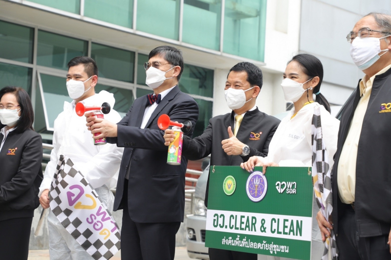 อว. ปล่อยขบวนคาราวาน “ส่งคืนพื้นที่ปลอดภัยสู่ชุมชน” ทำความสะอาดพื้นที่ศูนย์พักคอย-โรงพยาบาลสนาม นำร่อง 35 แห่ง