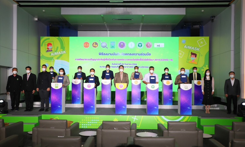 (28 ก.ย. 2564) ศ. (พิเศษ) ดร.เอนก เหล่าธรรมทัศน์ รัฐมนตรีว่าการกระทรวงการอุดมศึกษา วิทยาศาสตร์ วิจัยและนวัตกรรม (รมว.อว.) เป็นประธานในพิธีลงนามบันทึกข้อตกลงความร่วมมือว่าด้วยการพัฒนาระบบปัญญาประดิษฐ์เพื่อป้องกันการแพร่ระบาดของโรคโควิด-19 ภายในกรุงเทพมหานคร ปริมณฑล และส่วนภูมิภาค จัดโดย สำนักงานการวิจัยแห่งชาติ (วช.) โดยมี ศ.ดร.นพ.สิริฤกษ์ ทรงศิวิไล ปลัด อว., นพ.ณรงค์ สายวงศ์ รองปลัดกระทรวงสาธารณสุข, นายชยาวุธ จันทร รองปลัดกระทรวงมหาดไทย, พลตำรวจโท สุรเชษฐ์ หักพาล ที่ปรึกษา (สบ.9) สำนักงานตำรวจแห่งชาติ, ศ.ดร.ทันตแพทย์หญิงศิริวรรณ สืบนุการณ์ รองอธิการบดีฝ่ายวิจัยและนวัตกรรม มหาวิทยาลัยธรรมศาสตร์, นาวาอากาศเอกสมศักดิ์ ขาวสุวรรณ์ รักษาการกรรมการ บริษัท โทรคมนาคมแห่งชาติ จำกัด (มหาชน) และ ดร.วิภารัตน์ ดีอ่อง ผู้อำนวยการสำนักงานการวิจัยแห่งชาติ (วช.) ร่วมลงนาม ที่ห้องแถลงข่าวชั้น 1 อาคารพระจอมเกล้า อว.