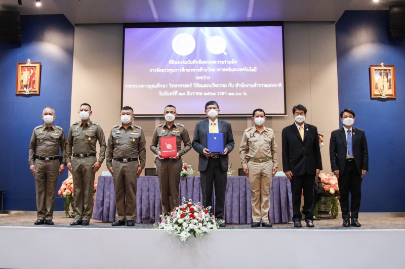 เมื่อวันที่ 27 ธ.ค. ศ.(พิเศษ) ดร.เอนก เหล่าธรรมทัศน์ รมว.การอุดมศึกษา วิทยาศาสตร์ วิจัยและนวัตกรรม และ พล.ต.อ.สุวัฒน์ แจ้งยอดสุข ผู้บัญชาการตำรวจแห่งชาติ ลงนามความร่วมมือการจัดสรรทุนการศึกษาด้านวิทยา ศาสตร์และเทคโนโลยีแก่สำนักงานตำรวจแห่งชาติ (สตช.) มี ศ.ดร.นายแพทย์ สิริฤกษ์ ทรงศิวิไล ปลัด อว. รศ.ดร.พาสิทธิ์ หล่อธีรพงศ์ รองปลัด อว. พล.ต.อ.ดำรงศักดิ์ กิตติประภัสร์ รอง ผบ.ตร. พล.ต.ท.กิตติ์รัฐ พันธุ์เพ็ชร์ ผู้ช่วย ผบ.ตร. ร่วมเป็นสักขีพยาน ที่ ห้องแถลงข่าว ชั้น 1 สำนักงานปลัด อว.