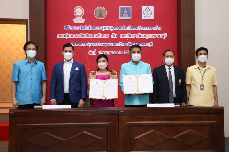 เมื่อวันที่ 17 พ.ค. ที่มหาวิทยาลัยกรุงเทพธนบุรี (มกธ.) คณะนิติศาสตร์ มหาวิทยาลัยกรุงเทพธนบุรี ร่วมกับ กรมคุ้มครองสิทธิและเสรีภาพ กระทรวงยุติธรรม ลงนามบันทึกข้อตกลงว่าด้วยความร่วมมือทางวิชาการระหว่างกรมคุ้มครองสิทธิและเสรีภาพกับมหาวิทยาลัยกรุงเทพธนบุรี โดยนายเรืองศักดิ์ สุวารี อธิบดีกรมคุ้มครองสิทธิและเสรีภาพ และ รศ.ดร.บังอร เบ็ญจาธิกุล อธิการบดีมหาวิทยาลัยกรุงเทพธนบุรี ร่วมทำพิธีเปิด “ศูนย์ไกล่เกลี่ยข้อพิพาทภาคประชาชน” ที่ชั้น อาคารซีซี อาเซียน เพื่อส่งเสริม พัฒนาความร่วมมือทางวิชาการที่เกี่ยวข้องร่วมกัน  อาทิ การจัดอบรมเพื่อขึ้นทะเบียนเป็นผู้ไกล่เกลี่ยภาคประชาชน การอบรมให้ความรู้กับประชาชนที่สนใจในเรื่องการไกล่เกลี่ย เป็นต้น ซึ่งความร่วมมือทางวิชาการดังกล่าวของมหาวิทยาลัยฯ ถือเป็นบทบาทหน้าที่ตามภารกิจที่สำคัญประการหนึ่งในด้านการให้บริการวิชาการแก่สังคม โดยมี รศ.ดร.บังอร เบ็ญจาธิกุล อธิการบดีมหาวิทยาลัยกรุงเทพธนบุรี นายเรืองศักดิ์ สุวารี อธิบดีกรมคุ้มครองสิทธิและเสรีภาพ กระทรวงยุติธรรม รศ.(พิเศษ) ดร.ดวงฤทธิ์ เบ็ญจาธิกุล ชัยรุ่งเรือง เลขานุการรัฐมนตรีว่าการและโฆษกกระทรวง กระทรวงการอุดมศึกษา วิทยาศาสตร์ วิจัยและนวัตกรรม (อว.) และ ผศ.ดร.วิทยา เบ็ญจาธิกุล รองอธิการบดีฝ่ายบริหารและคณบดีคณะนิติศาสตร์  มหาวิทยาลัยกรุงเทพธนบุรี (มกธ.) รวมทั้งผู้นำชุมชน 17 ในเขตทวีวัฒนาเข้าร่วมงาน