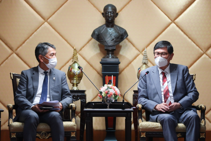 วันนี้ (19 กรกฎาคม 2565) เวลา 14.00 น. Mr. Takeo Kato ประธานหอการค้าญี่ปุ่น กรุงเทพฯ (Japanese Chamber of Commerce, Bangkok) และคณะ เข้าเยี่ยมคารวะ ศ.(พิเศษ) เอนก เหล่าธรรมทัศน์ รัฐมนตรีว่าการกระทรวงการอุดมศึกษา วิทยาศาสตร์ วิจัยและนวัตกรรม โดยมีผู้บริหารระดับสูงร่วมให้การต้อนรับ ณ ห้องพระจอมเกล้า ชั้น 4 อาคารพระจอมเกล้า สำนักงานปลัดกระทรวงการอุดมศึกษา วิทยาศาสตร์ วิจัยและนวัตกรรม เพื่อแนะนำตัวในโอกาสเข้ารับตำแหน่งใหม่ รวมทั้งแนะนำคณะกรรมการหอการค้าญี่ปุ่น กรุงเทพฯ ชุดใหม่