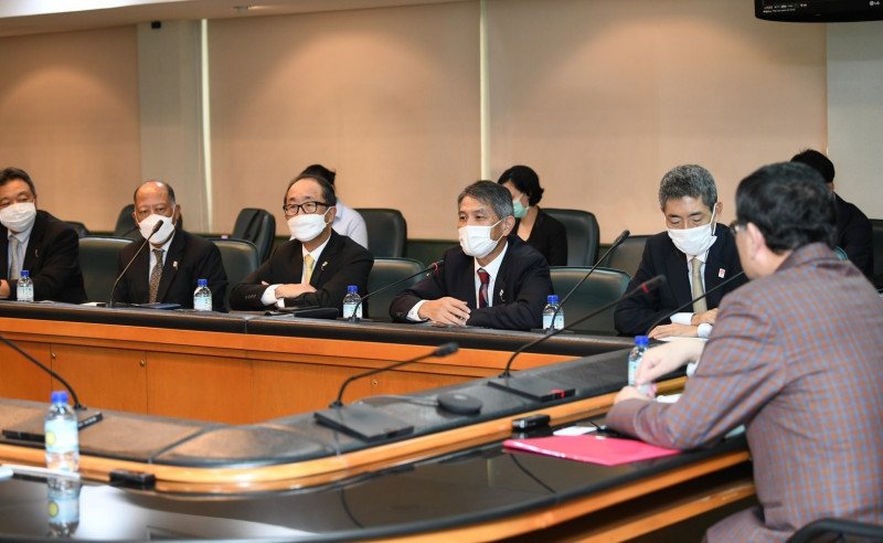 เมื่อวันที่ 15 กันยายน 2565 ณ ประชุมชั้น 4 อาคารพระจอมเกล้า สำนักงานปลัดกระทรวงการอุดมศึกษา วิทยาศาสตร์ วิจัยและนวัตกรรม (สป.อว.) ศ.(พิเศษ) ดร.เอนก เหล่าธรรมทัศน์ รัฐมนตรีว่าการกระทรวงการอุดมศึกษา วิทยาศาสตร์ วิจัยและนวัตกรรม ให้การต้อนรับ Mr. KURODA Jun ประธาน JETRO Bangkok (Japan External Trade Organization, Bangkok) พร้อมด้วย Mr. KATO Takeo ประธานหอการค้าญี่ปุ่น – กรุงเทพ และประธานบริษัท Mitsui & Co (Thailand) Ltd. และคณะ เข้าพบเพื่อรายงานผลสำรวจแนวโน้มเศรษฐกิจของบริษัทร่วมทุนญี่ปุ่นในประเทศไทยของหอการค้าญี่ปุ่น ประจำครึ่งแรกของปี 2565