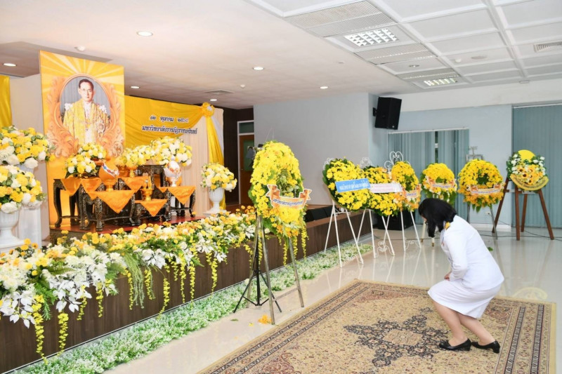 รองศาสตราจารย์ ดร.ดวงพร ภู่ผะกา อธิการบดีมหาวิทยาลัยราชภัฏราชนครินทร์ นำคณะผู้บริหาร คณาจารย์ บุคลากร และนักศึกษา ร่วมกิจกรรมน้อมรำลึกในพระมหากรุณาธิคุณ เนื่องในวันคล้ายวันสวรรคต พระบาทสมเด็จพระบรมชนกาธิเบศร มหาภูมิพลอดุลยเดชมหาราช บรมนาถบพิตร ในหลวงรัชกาลที่ 9 ซึ่งกิจกรรมภายในงานประกอบด้วยพิธีวางพวงมาลาหน้าพระบรมฉายาลักษณ์ การกล่าวน้อมรำลึกในพระมหากรุณาธิคุณ และยืนสงบนิ่งเป็นเวลา 89 วินาที ณ ห้องโชคอนันต์ ชั้น 2 อาคารเรียนรวมและอำนวยการ