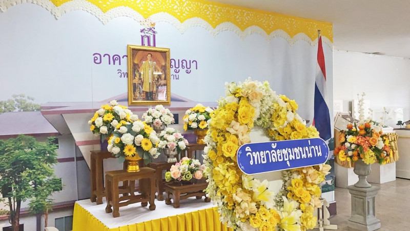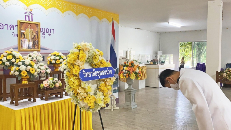 วันพุธที่ ๑๓ ตุลาคม พ.ศ. ๒๕๖๔ นายสุเมษ สายสูง ผู้อำนวยการวิทยาลัยชุมชนน่าน เป็นประธานนำผู้บริหาร ข้าราชการและบุคลากรวิทยาลัยชุมชนน่าน ประกอบพิธีวางพวงมาลา หน้าพระบรมฉายาลักษณ์ พระบาทสมเด็จ พระบรมชนกาธิเบศร มหาภูมิพลอดุลยเดชมหาราช บรมนาถบพิตร เนื่องในวันคล้ายวันสวรรคตพระบาทสมเด็จ พระบรมชนกาธิเบศร มหาภูมิพลอดุลยเดชมหาราช บรมนาถบพิตร ๑๓ ตุลาคม ๒๕๖๔ ณ ห้องโถงชั้น ๑ อาคารสิริเบญญา วิทยาลัยชุมชนน่าน พร้อมทั้งร่วมกันยืนสงบนิ่งเป็นเวลา ๘๙ วินาที เพื่อน้อมรำลึกถึงพระมหากรุณาธิคุณของพระองค์