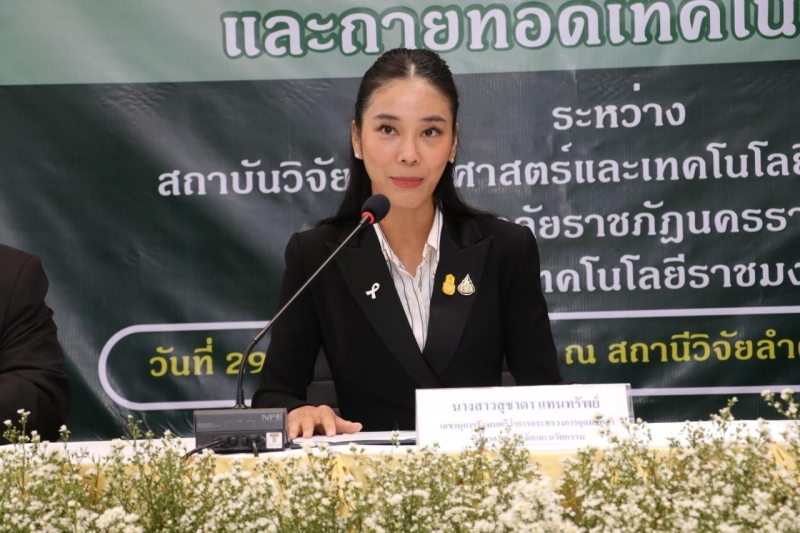 เมื่อวันที่ 29 พ.ย. นางสาวสุชาดา แทนทรัพย์ เลขานุการ รัฐมนตรีว่าการกระทรวงการอุดมศึกษา วิทยาศาสตร์ วิจัยและนวัตกรรม (อว.) ได้รับมอบหมายจากนางสาวศุภมาส อิศรภักดี รมว. อว. ให้เป็นประธานในพิธีลงนามในบันทึกข้อตกลงว่าด้วยความร่วมมือทางด้านงานวิจัย พัฒนา และถ่ายทอดเทคโนโลยี ระหว่าง ดร.ชุติมา เอี่ยมโชติชวลิต ผู้ว่าการสถาบันวิจัย วิทยาศาสตร์และเทคโนโลยีแห่งประเทศไทย (วว.) รศ.ดร.อดิศร เนาวนนท์ รักษาราชการแทนอธิการบดี มหาวิทยาลัยราชภัฏนครราชสีมา และ รศ.ดร.โฆษิต ศรีภูธร อธิการบดีมหาวิทยาลัยเทคโนโลยีราชมงคลอีสาน โดยมี ดร.โศรดา วัลภา รองผู้ว่าการการวิจัยและพัฒนาด้านอุตสาหกรรมชีวภาพ วว. เป็นผู้แทนกล่าวต้อนรับ และ ดร.อาภากร สุปัญญา รองผู้ว่าการยุทธศาสตร์และจัดนวัตกรรม วว. เป็นผู้กล่าวถึงวัตถุประสงค์ในการร่วมมือเพื่อการพัฒนาพื้นที่และการศึกษาด้วยองค์ความรู้วิทยาศาสตร์ เทคโนโลยีและนวัตกรรม เพื่อก้าวสู่การเติบโตที่ยั่งยืนในด้านเศรษฐกิจ สังคม และสิ่งแวดล้อมอย่างยั่งยืน ณ สถานีวิจัยลำตะคอง จ.นครราชสีมา
