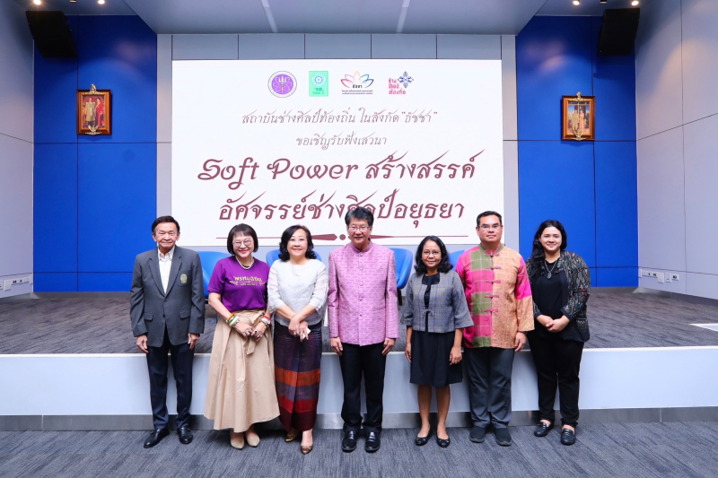วันที่ 29 พ.ย. นางสาวศุภมาส อิศรภักดี รัฐมนตรีว่าการกระทรวงการอุดมศึกษา วิทยาศาสตร์ วิจัยและนวัตกรรม (อว.) เป็นประธานเปิดงานเสวนาในหัวข้อ "Soft Power สร้างสรรค์ อัศจรรย์ช่างศิลป์อยุธยา” จัดโดย สถาบันช่างศิลป์ท้องถิ่น ในสังกัดวิทยสถานสังคมศาสตร์ วิทยาศาสตร์ วิจัยและนวัตกรรม (Thailand Academy of Social Science Humanities and Arts) หรือธัชชา โดยมี รศ.ดร.พาสิทธิ์ หล่อธีรพงศ์ รองปลัดกระทรวงการอุดมศึกษา วิทยาศาสตร์ วิจัยและนวัตกรรม ดร.สิริกร มณีรินทร์ ผู้อำนวยการสถาบันช่างศิลป์ท้องถิ่น (ธัชชา) นักวิจัย และบุคลการกระทรวง อว. เข้าร่วม ณ ห้องแถลงข่าว ชั้น 1 อาคารพระจอมเกล้า กระทรวงการอุดมศึกษา วิทยาศาสตร์ วิจัยและนวัตกรรม (โยธี)