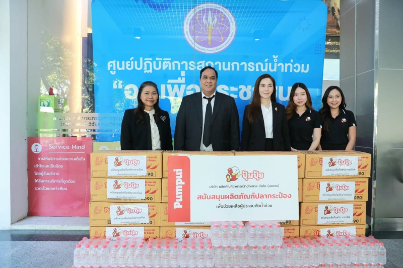ดร.พันธุ์เพิ่มศักดิ์ กล่าวว่า สิ่งของอุปโภคบริโภคที่บริษัทฯ นำมาบริจาคประกอบด้วย ปลากระป๋อง 2,000 กระป๋อง และ น้ำดื่มปุ้มปุ้ย 240 ขวด โดยกระทรวงจะเร่งดำเนินการจัดสรรและส่งต่อให้ประชาชนในพื้นที่ได้รับผลกระทบโดยเร็วที่สุด เพื่อบรรเทาความเดือดร้อนและสนับสนุนให้สามารถผ่านพ้นสถานการณ์อุทกภัยครั้งนี้ไปได้อย่างปลอดภัย