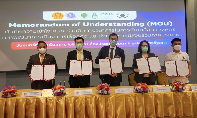 การลงนามดังกล่าว เป็นความร่วมมือระหว่าง 5 หน่วยงาน ประกอบด้วย คณะกรรมาธิการการพัฒนาการเมือง การสื่อสารมวลชนและการมีส่วนร่วมของประชาชน กระทรวงการอุดมศึกษา วิทยาศาสตร์ วิจัยและนวัตกรรม สถาบันพระปกเกล้า สถาบันส่งเสริมประชาธิปไตยเพื่อการต่างประเทศ และเครือข่าย We Watch