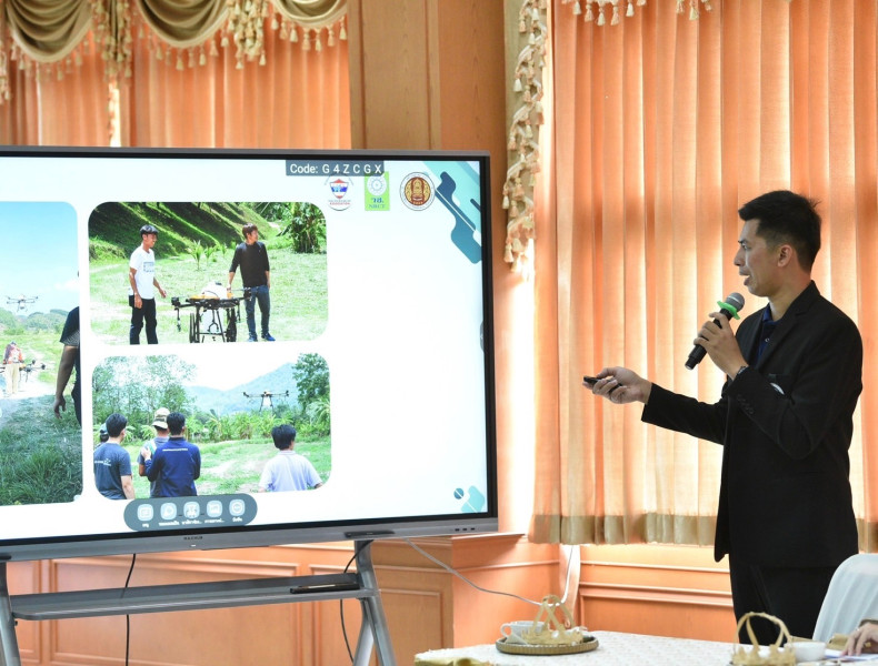 ฃอาจารย์พิศิษฐ์ มิตรเกื้อกูล กล่าวว่า โครงการศึกษาประยุกต์ใช้โดรนเพื่อการเกษตรในพื้นที่ต้นแบบจังหวัดชุมพร ได้รับการสนับสนุนทุนวิจัยจากสำนักงานการวิจัยแห่งชาติ เพื่อนำเทคโนโลยีโดรนไปใช้ประโยชน์กับเกษตรกร ในการเพิ่มผลผลิตทางการเกษตร ซึ่งพื้นที่ต้นแบบจังหวัดชุมพร เป็นพื้นที่ภูเขาสูงและมีพืชสวนที่มีต้นไม้สูง โดยเฉพาะทุเรียน ที่มีผลผลิตมากเป็นอันดับ 1 ของประเทศ มีเกษตรกรผู้ปลูกทุเรียนมากกว่า 24,000 ราย การพัฒนาเทคโนโลยีโดรนมาประยุกต์ใช้เพื่อเป็นต้นแบบในการพัฒนาภาคการเกษตรในภาคใต้ จึงเป็นการบูรณาการร่วมกันหลายภาคส่วนในการก่อตั้งศูนย์การเรียนรู้โดรนเพื่อการเกษตรในพื้นที่ต้นแบบ ณ วิทยาลัยการอาชีพหลังสวน จ.ชุมพร โดยศูนย์แห่งนี้ ดำเนินการครบวงจร โดยมีการพัฒนาจัดทำเป็นหลักสูตรในการอบรม ประกอบด้วย การประกอบการบินโดรน การฝึกบินโดรน การลงพื้นที่จริงเพื่อฝึกให้สามารถบินโดรนในพื้นที่จริง โดยใช้โดรนขนาดใหญ่ที่มีเรดาร์ป้องกันการชน เพิ่มฟังก์ชันใส่ถังในการหวานเมล็ดและยาฆ่าแมลงต่าง ๆ และการบริการให้กับเกษตรกรในการพ่นสารเคมียาฆ่าแมลงโดยใช้โดรน นอกจากนี้ ยังมีการแต่งตั้งคณะกรรมการบริหารจัดการ เพื่อให้เกิดการใช้งานอย่างยั่งยืน มีนักศึกษาหมุนเวียนต่อยอดอย่างต่อเนื่อง มีการถ่ายทอดองค์ความรู้การอบรมเชิงปฏิบัติด้านการประกอบอากาศยานโร้คนขับเพื่อการเกษตรกรรม สามารถเพิ่มประสิทธิภาพการทำเกษตรกรรมในหลายด้านทั้งการลดระยะเวลาในการฉีดพันสารชีวภาพให้แก่พืช ทำให้เทคโนโลยีโดรนเป็นเครื่องมือที่สำคัญในการแบ่งเบาภาระในการทำงานของเกษตรกรได้