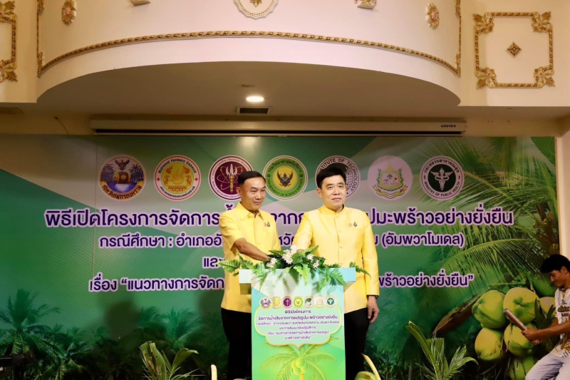 สำหรับโครงการอัมพวาโมเดล เป็นการบูรณาการร่วมกับสถาบันเทคโนโลยีแห่งเอเชีย และจังหวัดสมุทรสงคราม โดยมีหน่วยงานหลักของจังหวัดร่วมขับเคลื่อน ได้แก่ สภาเกษตรกรจังหวัดสมุทรสงคราม สำนักงานทรัพยากรธรรมชาติและสิ่งแวดล้อม จังหวัดสมุทรสงคราม สำนักงานสาธารณสุขอำเภออัมพวา เทศบาลตำบล องค์การบริหารส่วนตำบล และผู้ประกอบการแปรรูปมะพร้าวในพื้นที่อำเภออัมพวา ทั้งนี้ เพื่อจัดการน้ำเสียจากการแปรรูปมะพร้าว ทั้งด้านการกำหนดนโยบาย และข้อกำหนดในการจัดการน้ำเสีย รวมถึงการเข้าถึงเทคโนโลยีการจัดการน้ำเสียที่มีประสิทธิภาพ นอกจากนี้ โครงการดังกล่าวยังเป็นโครงการนำร่องที่สามารถขยายผลไปยังอำเภออื่นในจังหวัดสมุทรสงครามได้ และสามารถใช้เป็นต้นแบบในการจัดการน้ำเสียอย่างยั่งยืนสำหรับกิจการอื่นๆ ในจังหวัดสมุทรสงครามเพื่อการดูแลสิ่งแวดล้อมอย่างยังยืนต่อไป