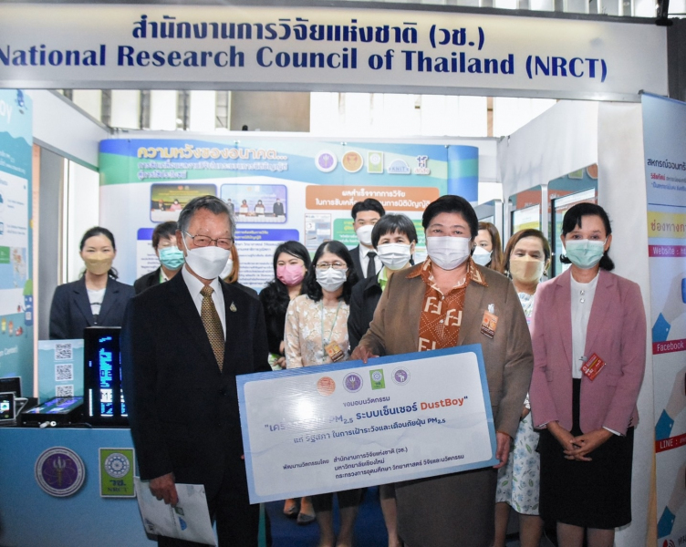 วันที่ 27 มิถุนายน 2565 ดร.วิภารัตน์  ดีอ่อง ผู้อำนวยการสำนักงานการวิจัยแห่งชาติ ได้นำคณะนักวิจัยที่ได้รับทุนสนับสนุนการวิจัยจากสำนักงานการวิจัยแห่งชาติ (วช.) นำผลงานเข้าร่วมแสดงนิทรรศการเนื่องในโอกาสครบรอบ 90 ปี รัฐสภาไทย ระหว่างวันที่ 27 มิถุนายน - 5 กรกฎาคม 2565 ณ อาคารรัฐสภา พร้อมกันนี้ วช. ได้มอบผลงานการพัฒนานวัตกรรม “เครื่องวัดฝุ่น PM2.5 ระบบเซ็นเซอร์ DustyBoy” จำนวน 3 เครื่อง ให้แก่รัฐสภา เพื่อนำไปใช้ประโยชน์ในการเฝ้าระวังและเตือนภัยฝุ่น PM2.5