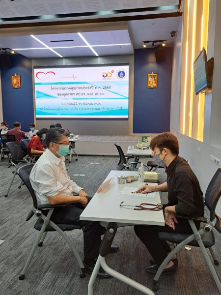 สำนักงานปลัดกระทรวงการอุดมศึกษา วิทยาศาสตร์ วิจัยและนวัตกรรม (สป.อว.) ร่วมกับ ศูนย์สุขภาพและบริการวิชาการด้านสาธารณสุขและสิ่งแวดล้อม คณะสาธารณสุขศาสตร์ มหาวิทยาลัยมหิดล จัดโครงการตรวจสุขภาพประจำปี พ.ศ. 2565 ของบุคลากรสำนักงานปลัดกระทรวงการอุดมศึกษาฯ และสำนักงานรัฐมนตรี กระทรวงการอุดมศึกษาฯ โดยจัดทีมหน่วยแพทย์เคลื่อนที่มาตรวจสุขภาพ เป็นเวลา 2 วัน คือ วันที่ 15 กันยายน 2565 เวลา 07.00-11.00 น. ณ สป.อว. อาคารพระจอมเกล้า ซอยโยธี ถนนพระรามที่ 6 เขตราชเทวี กรุงเทพฯ และวันที่ 16 กันยายน 2565 เวลา 07.00-11.00 น. ณ สป.อว. อาคารอุดมศึกษา 2 ถนนศรีอยุธยา เขตราชเทวี กรุงเทพฯ โดยในโอกาสนี้ ศ.ดร.สัมพันธ์ ฤทธิเดช เลขาธิการคณะกรรมการการอุดมศึกษา และ รศ.ดร.พาสิทธิ์ หล่อธีรพงศ์ รองปลัดกระทรวงการอุดมศึกษา วิทยาศาสตร์ วิจัยและนวัตกรรม ได้นำคณะบุคลากรเข้าร่วมกิจกรรมดังกล่าว โดยมีวัตถุประสงค์เพื่อให้บุคลากรในสังกัดได้เข้ารับการตรวจสุขภาพเป็นประจำทุกปี ซึ่งตระหนักถึงการส่งเสริมการพัฒนาคุณภาพชีวิตของบุคลากรให้มีสุขภาพพลานามัยแข็งแรงยิ่งขึ้น และมีขวัญกำลังใจในการปฏิบัติงานอย่างเต็มกำลังความสามารถต่อไป