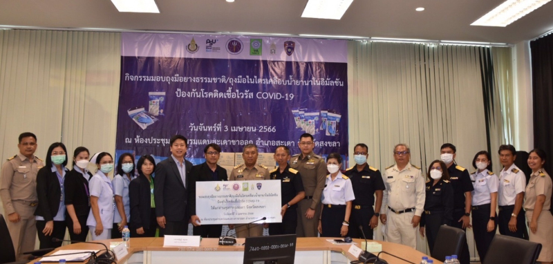 วันที่ 3 เมษายน 2566 สำนักงานการวิจัยแห่งชาติ (วช.) กระทรวงการอุดมศึกษา วิทยาศาสตร์ วิจัยและนวัตกรรม ส่งมอบ “นวัตกรรมถุงมือยางธรรมชาติ ถุงมือไนไตรเคลือบน้ำยานาโนอิมัลชันป้องกันโรคติดเชื้อไวรัส COVID-19” จำนวนกว่า 50,000 คู่ เพื่อใช้ในพื้นที่เสี่ยงด่านสะเดา อำเภอสะเดา จังหวัดสงขลา โดยมี นายวรณัฎฐ์ หนูรอต รองผู้ว่าราชการจังหวัดสงขลา ให้เกียรติต้อนรับ ณ ด่านตรวจคนเข้าเมือง อำเภอสะเดา จังหวัดสงขลา โดย วช. ได้มอบให้กับด่านศุลกากรสะเดา ด่านกักสัตว์สงขลา ด่านตรวจพืชสะเดา ด่านอาหารและยาสะเดา โรงพยาบาลสะเดา โรงพยาบาลปาดังเบซาร์ สำนักงานตรวจคนเข้าเมืองจังหวัดสงขลา ด่านตรวจคนหางานสะเดา ด่านตรวจสัตว์ป่าสะเดา ด่านตรวจสัตว์น้ำสะเดา ด่านควบคุมโรคติดต่อระหว่างประเทศสะเดา และสำนักงานป้องกันควบคุมโรคที่ 12 จังหวัดสงขลา เพื่อใช้ในการป้องกันโรคติดเชื้อไวรัส Covid-19 และโรคติดเชื้ออื่นๆ ในพื้นที่เสี่ยง ซึ่งนวัตกรรมดังกล่าว เป็นผลงานที่ วช. ให้การสนับสนุนทุนวิจัยในโครงการ “ถุงมือยางธรรมชาติ/ถุงมือไนไตรเคลือบน้ำยานาโนอิมัลชันป้องกันโรคติดเชื้อไวรัส Covid-19 ในพื้นที่เสี่ยง” โดยมี ผศ.นพ.วรวิทย์ วาณิชย์สุวรรณ ผู้อำนวยการสถาบันวิจัยและนวัตกรรมทางการแพทย์ มหาวิทยาลัยสงขลานครินทร์ เป็นหัวหน้าโครงการ