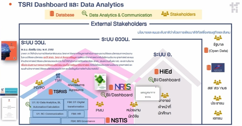 บอร์ดอำนวยการ สกสว.เห็นชอบการพัฒนาระบบวิเคราะห์ข้อมูลด้วยระบบธุรกิจอัจฉริยะและปัญญาประดิษฐ์ เพื่อเป็นโชว์รูมและนำไปผลักดันการใช้ประโยชน์ของภาคส่วนต่าง ๆ เพื่อขับเคลื่อนประเทศด้วยข้อมูล ววน. ทั้งยังช่วยเพิ่มประสิทธิภาพเสริมสร้างศักยภาพและลดเวลาทำงานของบุคลากร เปรียบเป็นขุมทรัพย์ของกองทุน ววน. ในการตอบคำถามกลุ่มเป้าหมาย