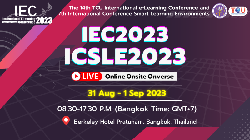 กระทรวงการอุดมศึกษา วิทยาศาสตร์ วิจัยและนวัตกรรม (อว.) โดย โครงการมหาวิทยาลัยไซเบอร์ไทย สำนักงานปลัดกระทรวงการอุดมศึกษา วิทยาศาสตร์ วิจัยและนวัตกรรม ร่วมกับ สถาบัน International Association of Smart Learning Environment (IASLE) จัดการประชุมวิชาการนานาชาติปี 2566 ครั้งที่ 14 : The 14th TCU International e-learning Conference 2023 Theme: Social Change and the Future of MOOCs" and "Smart Learning for Sustainable Society: Emerging Technologies and Applications ระหว่างวันพฤหัสบดีที่ 31 สิงหาคม ถึงวันศุกร์ที่ 1 กันยายน 2566 ณ โรงแรมเดอะเบอร์เคลีย์ ประตูน้ำ และออนไลน์ โดยมีวัตถุประสงค์เพื่อเป็นเวทีแลกเปลี่ยนความรู้ ความคิดระหว่างนักวิชาการการศึกษา นักวิจัย คณาจารย์ และนิสิตนักศึกษาที่สนใจที่ครอบคลุมความรู้ที่ทันสมัยด้านการศึกษาออนไลน์ ทั้งในและต่างประเทศ รวมถึงเพื่อประมวลความรู้ด้านการศึกษาออนไลน์ ในทุกด้านที่สำคัญจากนักวิชาการด้านการศึกษาทั้งในประเทศและต่างประเทศ จัดทำเป็นคลังความรู้ด้านการศึกษาออนไลน์ และเพื่อเผยแพร่ความรู้ด้านการศึกษาออนไลน์ จากคลังความรู้ แก่นักวิชาการการศึกษา นักวิจัย คณาจารย์และนิสิตนักศึกษาที่สนใจ ในรูปแบบและวิธีการต่าง ๆ เช่น เว็บคลังความรู้ วารสาร สิ่งตีพิมพ์อื่น ๆ