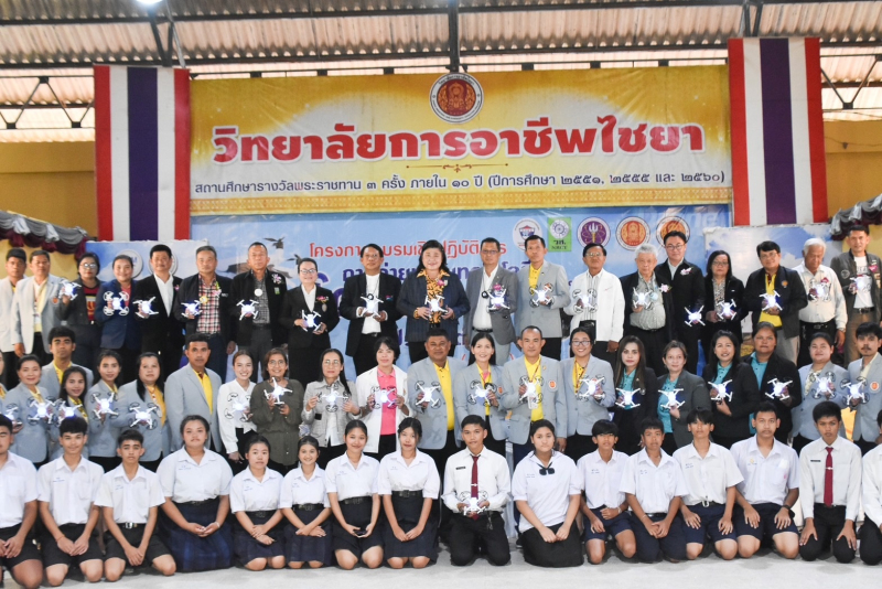 ในโอกาสเดียวกัน เมื่อวันอาทิตย์ที่ 30 กรกฎาคม 2566 สำนักงานการวิจัยแห่งชาติ (วช.) กระทรวงการอุดมศึกษา วิทยาศาสตร์ วิจัยและนวัตกรรม ร่วมกับ สมาคมกีฬาเครื่องบินจำลองและวิทยุบังคับ จัดกิจกรรมส่งเสริมและสนับสนุนการวิจัยและนวัตกรรม “การอบรมเชิงปฏิบัติการถ่ายทอดเทคโนโลยีโดรนแปรอักษรเพื่อประยุกต์สู่การใช้งาน” ภาคใต้ ครั้งที่ 4 โดยมี ดร.วิภารัตน์ ดีอ่อง ผู้อำนวยการสำนักงานการวิจัยแห่งชาติ ประธานในพิธีเปิดการอบรมฯ มีเป้าหมาย เพื่อส่งเสริมการถ่ายทอดองค์ความรู้เทคโนโลยีที่ทันสมัยเกี่ยวกับ “โดรนแปรอักษร” และการพัฒนาซอฟแวร์โดรนเพื่อนำไปประยุกต์ใช้งาน โดยมี นายพิศิษฐ์ มิตรเกื้อกูล นายกสมาคมกีฬาเครื่องบินจำลองและวิทยุบังคับ เป็นหัวหน้าโครงการวิจัยฯ พร้อมนี้ นายชวลิต โรจนรัตน์ นายอำเภอไชยา นางสาวพรรณา พรหมวิเชียร รองศึกษาธิการจังหวัดสุราษฎร์ธานี ดร.ประชาคม จันทรชิต ประธานกรรมการวิทยาลัยการอาชีพไชยา นายณรงค์ หวังอีน ผู้อำนวยการวิทยาลัยการอาชีพไชยา และคณะผู้บริหารหน่วยงานต่าง ๆ เข้าร่วมในพิธีเปิดการอบรมฯ ณ วิทยาลัยการอาชีพไชยา จังหวัดสุราษฎร์ธานี
