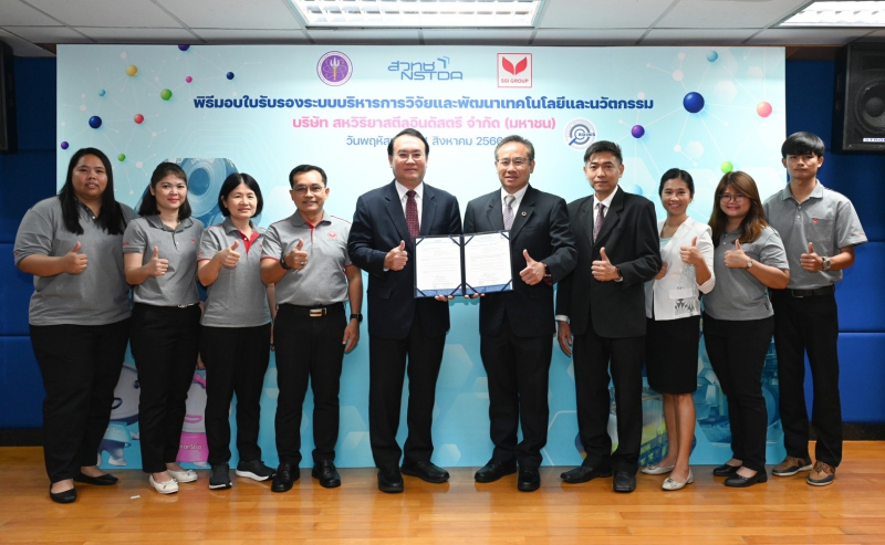 สวทช. มอบใบรับรองระบบบริหารการวิจัยและพัฒนาเทคโนโลยีและนวัตกรรม ให้กับ บริษัท สหวิริยาสตีลอินดัสตรี จำกัด (มหาชน) ใช้สิทธิยกเว้นภาษีได้ด้วยตนเอง (Self-Declaration)