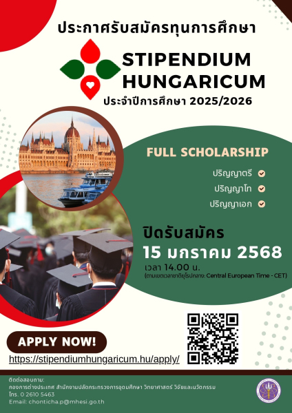 ประกาศ ทุนการศึกษา Stipendium Hungaricumประจำปีการศึกษา 2025-2026