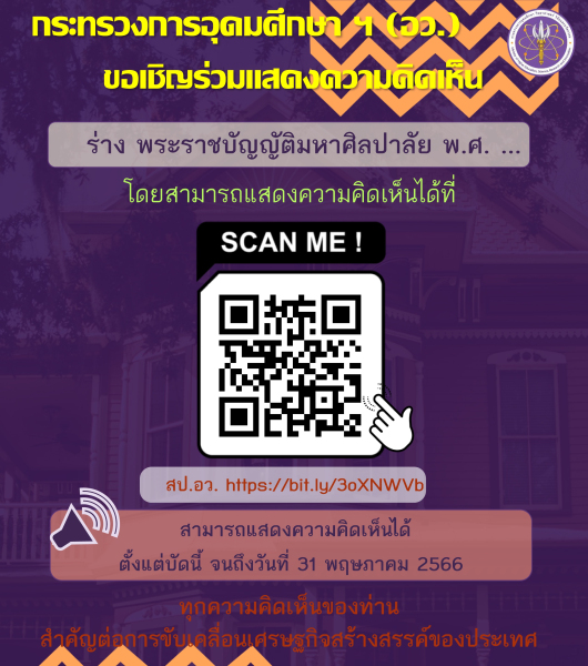 ประกาศ !!! กระทรวง อว. ขอเชิญร่วมแสดงความคิดเห็น (ร่าง) พระราชบัญญัติมหาศิลปาลัย พ.ศ. ....