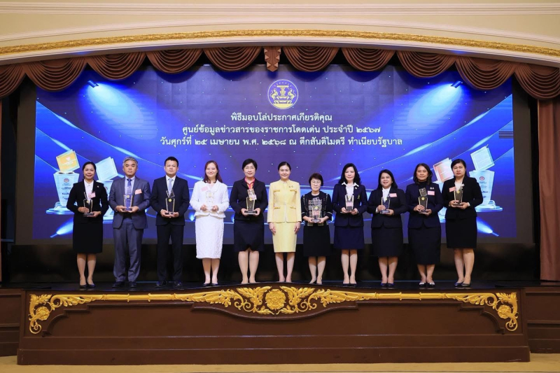 วันที่ 25 เมษายน 2568 กรมวิทยาศาสตร์บริการ โดย ดร.ภูวดี ตู้จินดา ผู้อำนวยการสถาบันเทคโนโลยีดิจิทัลวิทยาศาสตร์บริการ เข้ารับโล่ประกาศเกียรติคุณศูนย์ข้อมูลข่าวสารของราชการโดดเด่น ประจำปี พ.ศ. 2567 ในพิธีมอบรางวัลที่จัดขึ้น ณ ตึกสันติไมตรี ทำเนียบรัฐบาล โดยมีนางสาวจิราพร สินธุไพร รัฐมนตรีประจำสำนักนายกรัฐมนตรี เป็นประธานในพิธี