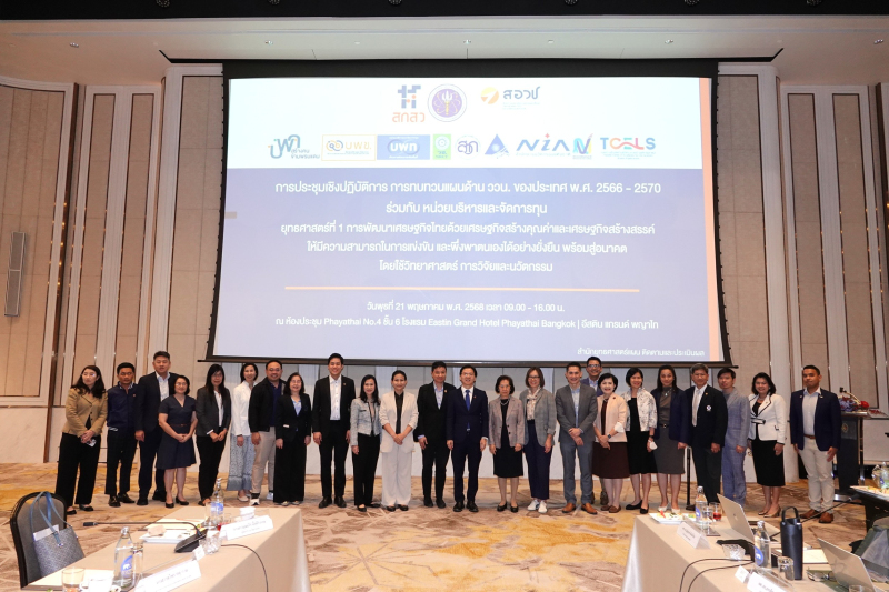 สกสว.จัดประชุมเชิงปฏิบัติการทบทวนแผน ววน. ยุทธศาสตร์การพัฒนาเศรษฐกิจไทยด้วยเศรษฐกิจคุณค่าและเศรษฐกิจสร้างสรรค์ ให้มีความสามารถในการแข่งขัน และพึ่งพาตนเองได้อย่างยั่งยืน พร้อมสู่อนาคต ควบคู่กับการปรับปรุงแผนพัฒนาเศรษฐกิจและสังคมแห่งชาติ ฉบับที่ 14 ร่วมกับสภาพัฒน์ หวังให้เกิดผลลัพธ์ทางเศรษฐกิจของประเทศมากขึ้น