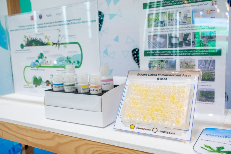 ผู้ช่วยศาสตราจารย์ ดร.เชาวรีย์ อรรถลังรอง ผู้อำนวยการ ไบโอเทค สวทช. กล่าวถึงผลสำเร็จของการวิจัยและพัฒนาในภาคมันสำปะหลังว่า “ความร่วมมือที่มีมายาวนานระหว่าง ไบโอเทค สวทช. และ มจธ. นำไปสู่งานวิจัยที่เป็นประโยชน์ต่อประเทศและภูมิภาคเอเชียตะวันออกเฉียงใต้ ที่นำไปใช้ประโยชน์ได้จริงมากมาย อาทิ ส่วนต้นน้ำ มีการพัฒนาสายพันธุ์มันสำปะหลังที่ให้ผลผลิตสูง ไซยาไนด์ต่ำ เช่น พันธุ์พิรุณ 1, 2 และ 4 ชุดตรวจวินิจฉัยโรคใบด่างมันสำปะหลังและการประยุกต์ใช้เพื่อเฝ้าระวังและจัดการควบคุมโรค ส่วนกลางน้ำ มีการดำเนินงานวิจัยกลางน้ำ เพื่อเพิ่มประสิทธิภาพด้านการจัดการและการใช้ประโยชน์จากทรัพยากรมันสำปะหลัง รวมถึงการจัดการของเสีย (waste management) ที่เกิดขึ้น เช่น เทคโนโลยีในการเพิ่มความเข้มข้นและทำความสะอาดแป้งโดยเทคโนโลยีไฮโดรไซโคลนประสิทธิภาพสูง และเทคโนโลยีการผลิตก๊าซชีวภาพประสิทธิภาพสูงจากกากมันสำปะหลัง ส่วนปลายน้ำ มีการพัฒนาเทคโนโลยีกระบวนการผลิตทรีฮาโลสจากมอลโตสโดยใช้เอนไซม์ Trehalose synthase แบบขั้นตอนเดียว ซึ่งเป็นกระบวนการที่ง่าย ไม่ซับซ้อน และให้ผลผลิตสูง โดยใช้วัตถุดิบคือแป้งมันสำปะหลังในการนำมาเปลี่ยนเป็นน้ำเชื่อมมอลโตส