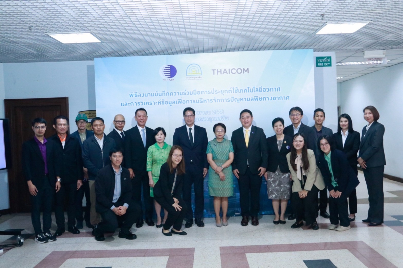 กระทรวงการอุดมศึกษา วิทยาศาสตร์ วิจัยและนวัตกรรม (อว.) โดย ผศ.ดร.วีรชัย อาจหาญ ผู้ว่าการ สถาบันวิจัยวิทยาศาสตร์และเทคโนโลยีแห่งประเทศไทย (วว.) นางสาวปรีญาพร สุวรรณเกษ อธิบดีกรมควบคุมมลพิษ กระทรวงทรัพยากรธรรมชาติและสิ่งแวดล้อม (ทส.) และนายปฐมภพ สุวรรณศิริ ประธานเจ้าหน้าที่บริหาร บริษัท ไทยคม จำกัด (มหาชน) หรือ THAICOM ร่วมลงนามบันทึกข้อตกลงความเข้าใจว่าด้วยความร่วมมือในการประยุกต์ใช้เทคโนโลยีอวกาศและการวิเคราะห์ข้อมูลเพื่อการบริหารจัดการปัญหามลพิษทางอากาศ โดยมี ดร.พัชทรา มณีสินธุ์ รองผู้ว่าการวิจัยและพัฒนาด้านพัฒนาอย่างยั่งยืน วว. นายปิยะวัฒน์ จริยเศรษฐพงศ์ หัวหน้าคณะผู้บริหารด้านการค้า THAICOM และนางกัญชลี นาวิกภูมิ รองอธิบดีกรมควบคุมมลพิษ ร่วมเป็นสักขีพยาน
