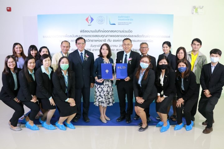สถาบันมาตรวิทยาแห่งชาติ (มว.) กระทรวงการอุดมศึกษา วิทยาศาสตร์ วิจัยและนวัตกรรม และ องค์การสุรา กรมสรรพสามิต กระทรวงการคลัง ร่วมลงนามบันทึกข้อตกลงความร่วมมือ “ระบบมาตรวิทยาเพื่อสนับสนุนการตรวจสอบคุณภาพแอลกอฮอล์และผลิตภัณฑ์จากแอลกอฮอล์” ในวันที่ 25 ธันวาคม 2563 ณ อาคารมาตรธำรง สถาบันมาตรวิทยาแห่งชาติ โดยมี นายสมควร จารุสมบัติ รองผู้อำนวยการฝ่ายผลิต  องค์การสุรา กรมสรรพสามิต รักษาการในตำแหน่ง ผู้อำนวยการองค์การสุรา และนางอัจฉรา  เจริญสุข ผู้อำนวยการสถาบันมาตรวิทยาแห่งชาติ  เป็นผู้ลงนาม โดยทั้งสองหน่วยงานร่วมกันกำหนดแผนพัฒนาและใช้วัสดุอ้างอิงรับรอง (Certified Reference Materials, CRMs) เพื่อการตรวจสอบความบริสุทธิ์ของแอลกอฮอล์และผลิตภัณฑ์จากแอลกอฮอล์ รวมทั้งกำหนดแผนการพัฒนาศักยภาพห้องปฏิบัติการวิเคราะห์ทดสอบ และบุคลากรที่เกี่ยวข้อง เพื่อสร้างความน่าเชื่อถือ ความมั่นใจ และการยอมรับ แอลกอฮอล์และผลิตภัณฑ์แอลกอฮอล์ที่ผลิตจากองค์การสุรา ทั้งในประเทศและในระดับสากล