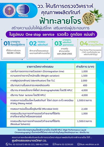 วว. ให้บริการตรวจวิเคราะห์คุณภาพผลิตภัณฑ์ฟ้าทะลายโจร