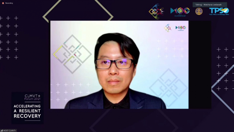 ดร.พันธุ์อาจ ชัยรัตน์ ผู้อำนวยการ NIA ได้รับเชิญเข้าร่วมเป็นวิทยากรบรรยายในงานสัมมนาผ่านสื่ออิเล็กทรอนิกส์ในหัวข้อ “CLMVT+ Forum 2021: Accelerating a Resilient Recovery” จัดขึ้นโดย สำนักงานนโยบายและยุทธศาสตร์การค้า กระทรวงพาณิชย์