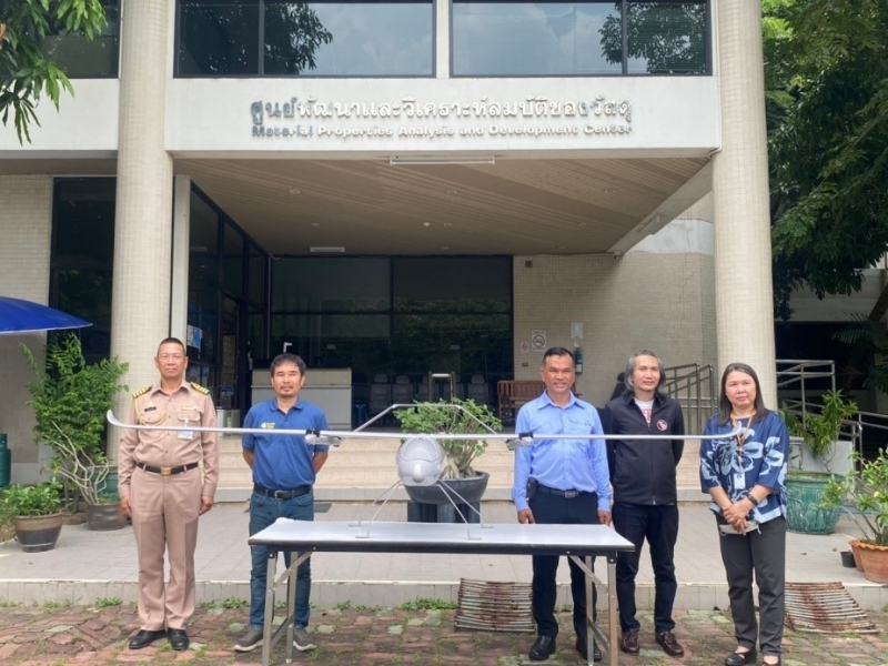 ดร.ดวงพร อุนพานิช ผู้อำนวยการศูนย์พัฒนาและวิเคราะห์สมบัติของวัสดุ (MPAD) สถาบันวิจัยวิทยาศาสตร์และเทคโนโลยีแห่งประเทศไทย (วว.) กระทรวงการอุดมศึกษา วิทยาศาสตร์ วิจัยและนวัตกรรม (อว.) นายนารถพล บัวอำไพ ผู้อำนวยการ ห้องปฏิบัติการตรวจสอบคุณสมบัติวัสดุและวิเคราะห์ความเสียหาย และ ดร.สุเทพ จอยเอกา นักวิชาการ MPAD ร่วมให้การต้อนรับ น.อ.ภาณุพงศ์ ขุมสิน ผอ.กผค. สำนักงานวิจัยและพัฒนาการทางทหารกองทัพเรือ และนายทหารโครงการอากาศยานไร้คนขับเพื่อการลาดตระเวนทางทะเล แบบ MARCUS-B กองทัพเรือ พร้อมด้วย นายธนดล ถมยา บริษัท SDT composite จำกัด และคณะนักวิจัยของโครงการฯ ในโอกาสเข้าหารือความร่วมมือในการทดสอบอากาศยานไร้คนขับเพื่อการลาดตระเวนทางทะเล แบบ MARCUS-B ที่กองทัพเรือได้ทำการวิจัยและจัดสร้างขึ้น โดยได้นำอากาศยานไร้คนขับที่เป็นผลผลิตของโครงการมาจัดแสดงและทำการส่งมอบชิ้นส่วนของอากาศยานไร้คนขับให้กับห้องปฏิบัติการคุณสมบัติวัสดุและวิเคราะห์ความเสียหาย วว. เพื่อทำการวิเคราะห์/ทดสอบต่อไป ในโอกาสนี้ สำนักงานวิจัยและพัฒนาการทางทหาร กองทัพเรือ ยังได้หารือความร่วมมือในอนาคตกับห้องปฏิบัติการฯ ของ วว. ด้วย เมื่อวันที่ 2 กันยายน 2565 ณ MPAD วว. เทคโนธานี คลองห้า จ.ปทุมธานี