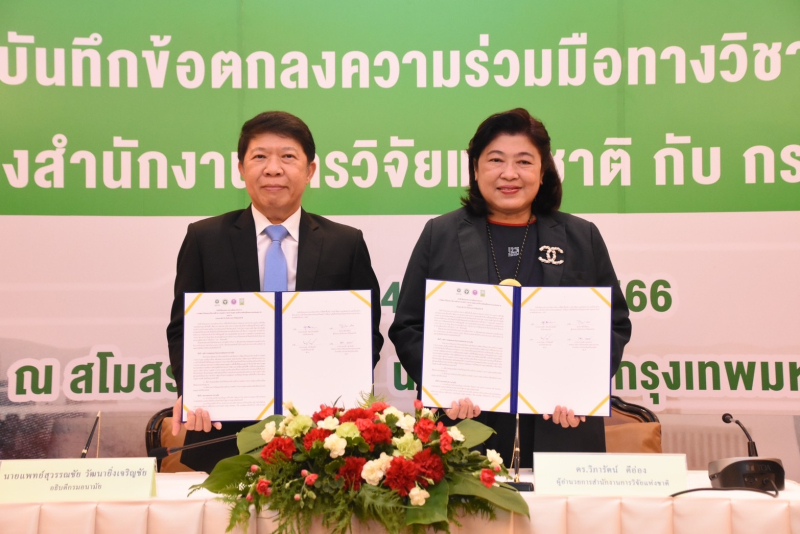 (4 มกราคม 2566) สำนักงานการวิจัยแห่งชาติ (วช.) ภายใต้กระทรวงการอุดมศึกษา วิทยาศาสตร์ วิจัยและนวัตกรรม โดย ดร.วิภารัตน์ ดีอ่อง ผู้อำนวยการสำนักงานการวิจัยแห่งชาติ ลงนามบันทึกข้อตกลงความร่วมมือทางวิชาการ (MOU) “การพัฒนาวิจัยและนวัตกรรมด้านการแพทย์ การสาธารณสุขและสิ่งแวดล้อมที่ส่งผลกระทบต่อสุขภาพ” กับกรมอนามัย กระทรวงสาธารณสุข โดย นายแพทย์สุวรรณชัย วัฒนายิ่งเจริญชัย อธิบดีกรมอนามัย เพื่อพัฒนางานวิจัยและนวัตกรรมด้านการแพทย์ การสาธารณสุข และสิ่งแวดล้อม หวังยกระดับความเป็นเลิศทางวิชาการสาธารณสุขไทย พร้อมทั้งปรับปรุงแก้ไขปัญหาตั้งแต่ระดับนโยบาย แผนงาน แนวทางการปฏิบัติ รวมทั้งการออกกฎหมาย และข้อบัญญัติตามพระราชบัญญัติสาธารณสุข ณ สโมสรราชพฤกษ์ นอร์ธปาร์ค ถนนวิภาวดี กรุงเทพมหานคร
