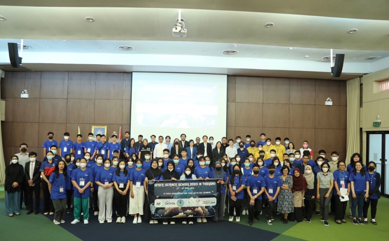 24-28 เมษายน 2566 สำนักงานพัฒนาเทคโนโลยีอวกาศและภูมิสารสนเทศ (องค์การมหาชน) หรือ GISTDA ภายใต้กระทรวงการอุดมศึกษา วิทยาศาสตร์ วิจัยและนวัตกรรม (อว.) จัดค่าย Space Science School 2023 in Thailand ร่วมกับสถานเอกอัครราชทูตสหรัฐอเมริกาประจำประเทศไทย เพื่อให้เยาวชนไทยในพื้นที่ห่างไกล และกลุ่มประเทศอาเซียนรวม 60 คน ได้มีโอกาสแลกเปลี่ยนเรียนรู้ด้านเทคโนโลยีอวกาศและภูมิสารสนเทศ โดยมี ดร.ศิริลักษณ์ พฤกษ์ปิติกุล รองผู้อำนวยการ GISTDA และ คุณ Alma Green ผู้ประสานงานด้าน Public Engagement and Education ผู้แทนจากสถานเอกอัครราชทูตสหรัฐอเมริกาประจำประเทศไทย ร่วมด้วย ดร.ศิวัช บุญเกิด รองปลัดเมืองพัทยา และคุณอุฬาริกา กองพรหม ผู้ช่วยผู้อำนวยการสวนสัตว์เปิดเขาเขียว เข้าร่วมในพิธีเปิด ณ อุทยานรังสรรค์นวัตกรรมอวกาศ อำเภอศรีราชา จังหวัดชลบุรี