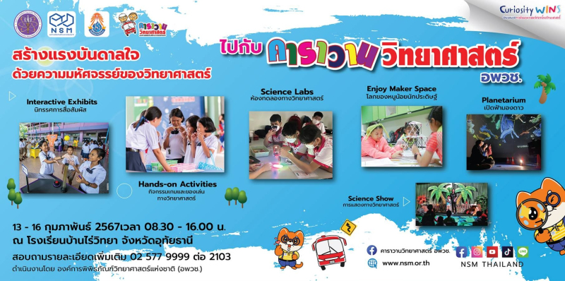 ขอเชิญชวนเยาวชนมาสร้างแรงบันดาลใจและค้นพบความมหัศจรรย์ด้วยวิทยาศาสตร์ ผ่านนิทรรศการและกิจกรรมที่สนุกสนาน พร้อมเคลื่อนพลเพื่อขยายโอกาสการเรียนรู้ไปยังภูมิภาคต่างๆ ให้กับเยาวชน และประชาชนทั่วประเทศ