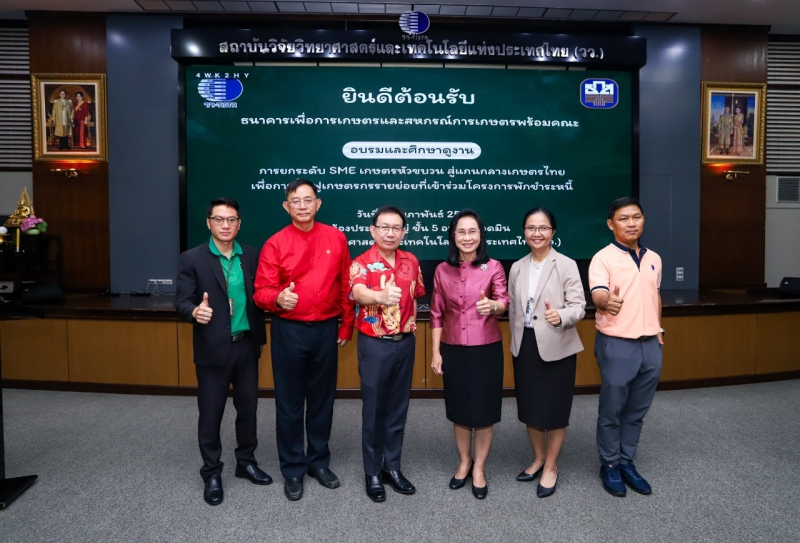 ดร.ชุติมา เอี่ยมโชติชวลิต ผู้ว่าการ สถาบันวิจัยวิทยาศาสตร์และเทคโนโลยีแห่งประเทศไทย (วว.) กระทรวงการอุดมศึกษา วิทยาศาสตร์ วิจัยและนวัตกรรม (อว.) เป็นประธานต้อนรับ นายเกียรติศักดิ์ พระวร ผู้ช่วยผู้จัดการใหญ่  ธนาคารเพื่อการเกษตรและสหกรณ์การเกษตร (ธ.ก.ส.) พร้อมคณะเกษตรกร ภายใต้โครงการ “การยกระดับ SME เกษตรหัวขบวน สู่แกนกลางเกษตรไทย” เพื่อการฟื้นฟูเกษตรกรรายย่อยที่เข้าร่วมโครงการพักชำระหนี้  ในโอกาสฝึกอบรมและศึกษาดูงานภารกิจวิทยาศาสตร์ เทคโนโลยี และนวัตกรรม (วทน.) โอกาสนี้ นายจิรศักดิ์ สุยาคำ ผอ.สำนักพัฒนา SME และ Startup ธ.ก.ส. บรรยายเกี่ยวกับกรอบความรู้ด้านบทบาทของหัวขบวน SME เกษตร การเสริมสร้างขีดความสามารถและการเชื่อมโยงเกษตรกรรายย่อย ในส่วน วว. โดย ดร.รัชนีวรรณ  กุลจันทร์  ผอ.ห้องปฏิบัติการพัฒนาบรรจุภัณฑ์ ศูนย์การบรรจุหีบห่อไทย บรรยายให้ความรู้เรื่อง การพัฒนาบรรจุภัณฑ์เพื่อการสร้างมูลค่าเพิ่มยกระดับผลิตภัณฑ์ ดร.กุศล เอี่ยมทรัพย์ นักวิจัยอาวุโส ศูนย์เชี่ยวชาญนวัตกรรมเกษตรสร้างสรรค์ บรรยายเกี่ยวกับเกษตรมูลค่าสูง เพื่อยกระดับความสามารถการทำธุรกิจของเกษตรกรหัวขบวน  และนางสาวมณีรัตน์ จัตตุลาภา นักวิจัยและผู้จัดการ ศูนย์บริการนวัตกรรมเวชสำอางแบบครบวงจร  (ICOS) บรรยายการวิจัยพัฒนาและบริการผลิตภัณฑ์เครื่องสำอางจากสมุนไพร