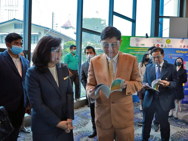 วันที่ 24 ธันวาคม 2563 สำนักงานคณะกรรมการส่งเสริวิทยาศาสตร์ วิจัยและนวัตกรรม (สกสว.) ร่วมกับ กระทรวงการอุดมศึกษาวิทยาศาสตร์ วิจัยและนวัตกรรม (อว.) จัดงานแถลง แผนยุทธศาสตร์กระทรวง อว. ประจำปี 2564 งานนิทรรศการและมอบรางวัลผลงานวิจัยและนวัตกรรมเด่นตอบรับ ชีวิตวิถีใหม่ (New Normal) และ การปรับตัวอันเนื่องมาจากภาวะวิกฤติโควิด 19 พร้อมทั้งจัดนิทรรศการแสดง 10 ผลงานวิจัยและนวัตกรรมเด่น ช่วยประเทศในการรับมือกับภาวะการแพร่ระบาดของโควิด-19