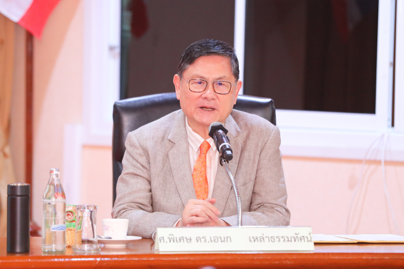 ศ.(พิเศษ) ดร.เอนก กล่าวว่า การตีความข่าวและข้อมูล ต้องมีกรอบความคิด ทฤษฎี กระบวนทัศน์ แนวคิด เรื่องของความความมั่นคง ต้องยึดสิ่งเหล่านี้เป็นสำคัญ เช่น ชาติตะวันตกเป็นชาติที่มีความก้าวหน้าอย่างมาก โดยสะท้อนผลต่าง ๆ มาถึงไทย ถ้าชาติตะวันตกยึดหลักการค้าเป็นเสรี ไทยก็ควรให้การค้าเป็นเสรีเช่นกัน แต่นี่เป็นความคิดแบบด้านเดียว โลกเรามีความหลากหลาย มีความเจริญแตกต่างกัน โลกเป็นการประชันขันแข่ง ไม่มีอำนาจใดคงอยู่แน่นอน มีการปรับและเปลี่ยนแปลงตลอดเวลา เราจึงต้องมีกรอบความคิด ทฤษฎี โลกทัศน์ที่ดีจะทำให้เราเข้าใจโลกมากขึ้น สามารถตีความสิ่งต่าง ๆ ได้ดีขึ้น เช่น จีน เป็นตัวอย่างของการใช้ระบบการปกครองที่ใช้ความคิดมากที่สุด ผลิตทฤษฎีขึ้นมาใช้ นำเศรษฐกิจเข้ามามีส่วนช่วยขับเคลื่อนการปกครอง สำหรับการบริหารจัดการความมั่นคง อยากให้ศึกษาเรื่องต่าง ๆ อย่างถ่องแท้ เพื่อจะได้เข้าใจเรื่องนั้น ๆ ดีที่สุด เราเป็นประเทศที่มีพื้นฐานที่ดีเป็นทุนเดิม เป็นประเทศที่ไม่เคยล้าหลัง และเป็นประเทศที่พัฒนาแล้ว ประเทศไทยเต็มไปด้วยโอกาส แต่ต้องมีกรอบความคิด เพื่อช่วยให้มองเห็นโอกาสเหล่านั้น