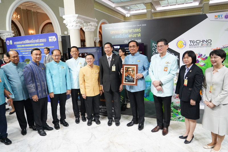 เมื่อวันที่ 8 ส.ค. กระทรวงการอุดมศึกษา วิทยาศาสตร์ วิจัยและนวัตกรรม (อว.) เสนอผลงาน "มหกรรมวิทยาศาสตร์และเทคโนโลยีแห่งชาติ ประจำปี 2566" "เทคโนโลยีและนวัตกรรมของไทย ประจำปี 2566 : TechnoMart 2023" และ "มหกรรมงานวิจัยแห่งชาติ 2566 (Thailand Research Expo 2023)" ต่อนายกรัฐมนตรี และคณะรัฐมนตรี นำโดย ศ.(พิเศษ) ดร.เอนก เหล่าธรรมทัศน์ รมว.กระทรวง อว. พร้อมด้วย ดร.บุญเกียรติ การะเวกพันธุ์ ผู้ช่วย รมว.กระทรวง อว., นายสัมพันธ์ เย็นสำราญ ที่ปรึกษา รมว.กระทรวง อว., ดร.ดนุช ตันเทอดทิตย์ เลขานุการ รมว.กระทรวง อว., นางสาวสุณีย์ เลิศเพียรธรรม หัวหน้าผู้ตรวจราชการกระทรวง อว. และ ผู้บริหารหน่วยงานในสังกัดกระทรวง อว. ณ ตึกสันติไมตรี ทำเนียบรัฐบาล
